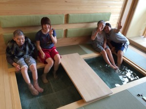 そのおかげで、新(あらた)も足湯の畳、背もたれなどを入れていただきました。